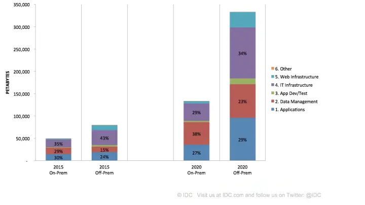 另一方面,根据 IDC 对未来企业级存储市场的增长趋势预测:云存储的需求相比于 2015 年,到 2020 将会有 3 倍以上的增长,企业存储市场中,数据管理类企业核心数据消耗的存储所占的比例将从 15% 提升到 23%,结构化数据和 DBMS 数据在企业存储市场中将进一步加强。