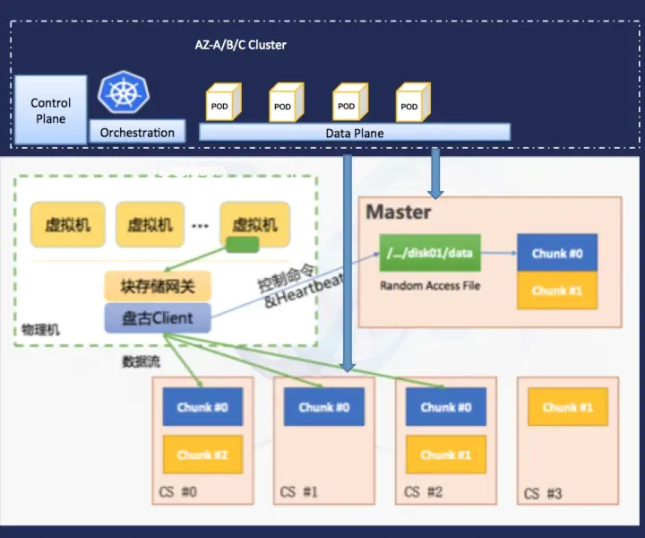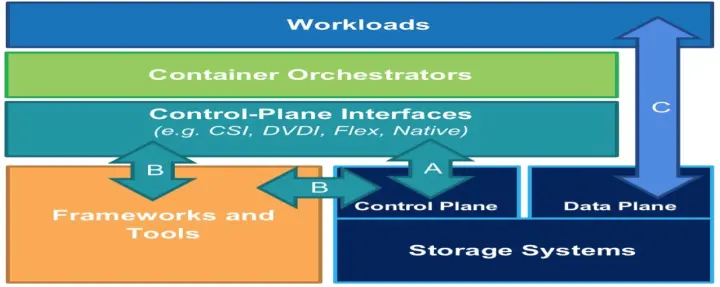 - 控制面:扩展容器编排系统,支持超融合。相比块而言,卷的数量多且卷的大小任意配置,更加灵活;