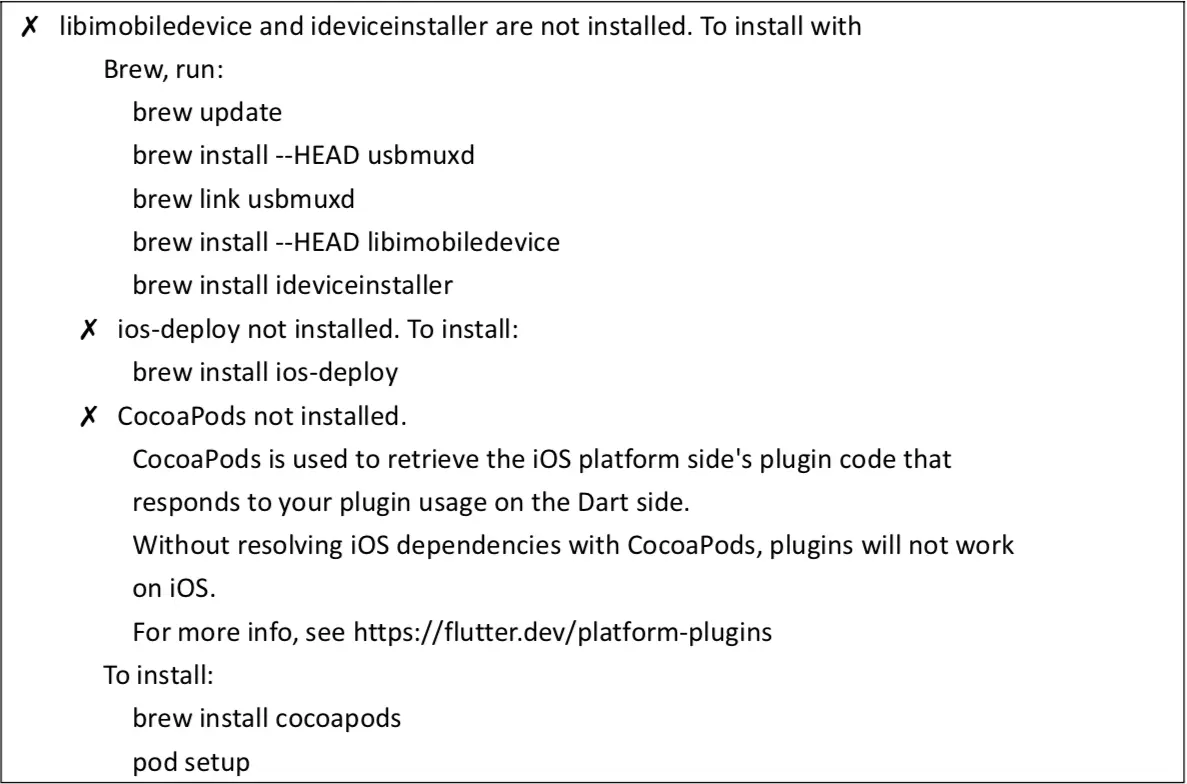 第一次运行 flutter doctor 的时候会提示下面错误