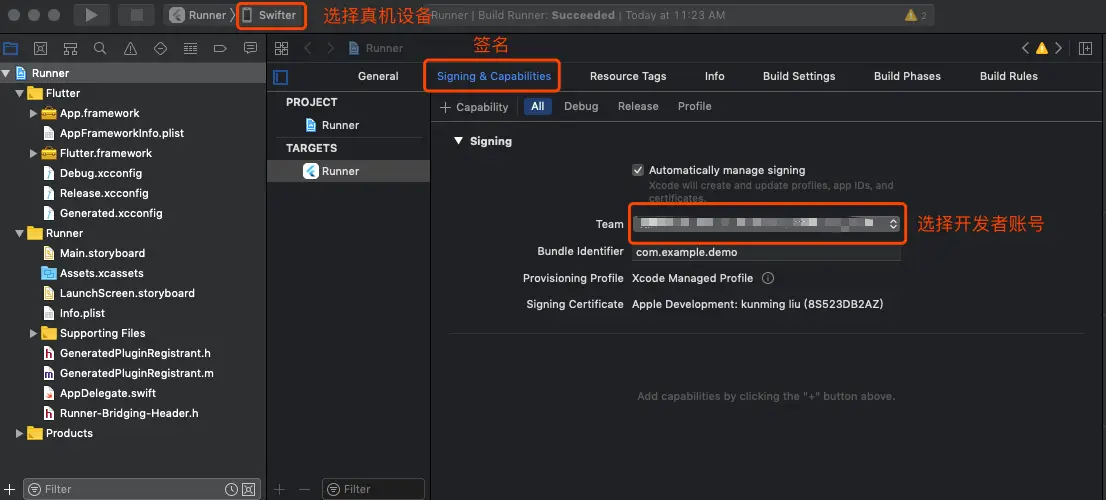 - 选择真机