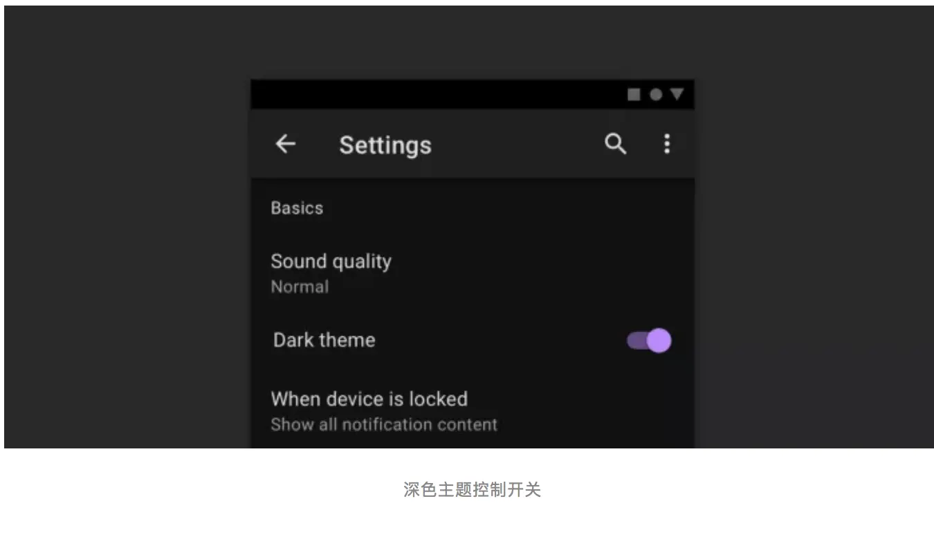所以最好不要使用自动切换模式,而应该允许用户使用UI控件打开(或关闭)深色主题。用户应该能够根据自己的实际需要来手动选择不同的模式。