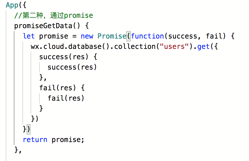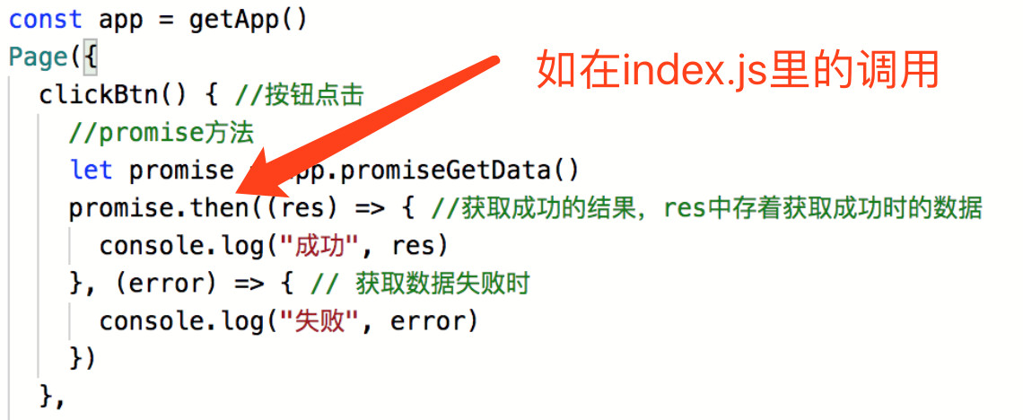 promise的好处就是可以不用那个层层传递,不用那么绕。 还是先看代码,后面结合代码给大家讲下原理 app.js里定义如下方法