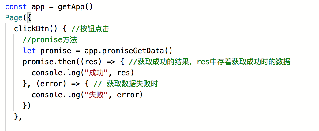 - 5、在需要获取数据的地方通过promise.then()的方式获取,这里面接受两个参数,都是匿名函数,第一个是接受成功的函数,第二个是失败时候的函数
