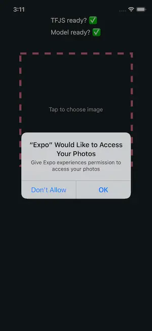 TFJS ready? {isTfReady ? <Text>✅</Text> : ''}