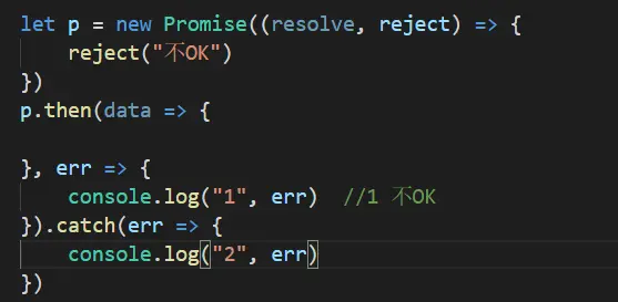 1)如果then方法中有err函数,在这个then方法后面又有catch方法;如果转成了失败态,它会走then方法的err函数。