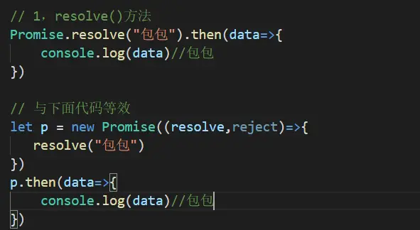 在Pomise类上面,提供了几个静态方法resolve、reject它们都可直接使用.运算符调用,直接说不够直观,就看代码吧!