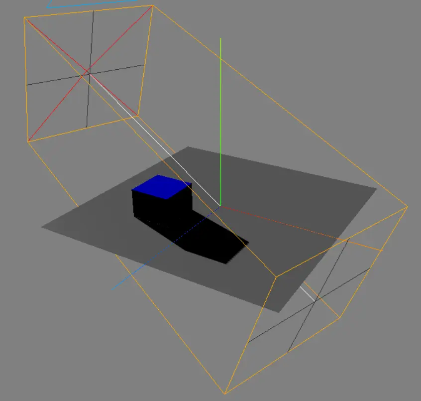 设置的上下左右前后近远都是设置可以产生阴影的一个正方体, 在这个正方体外不会产生任何阴影