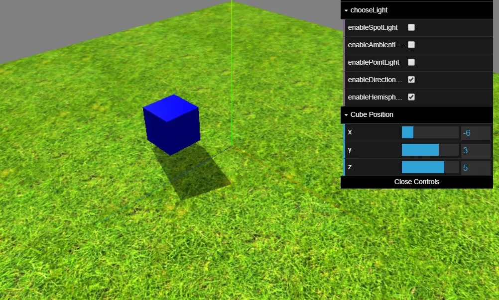 - HemisphereLight: 特殊光源, 模拟反光面和光线微弱的天空来创建更自然的室外光线. 无法创建阴影