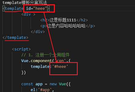 - 第二种写法:直接写tempalate标签,然后关联id就行了