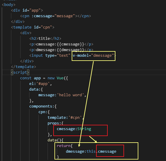 此时只是dmessage改了,但是父组件中的data中的message没有改变,想要改变父组件中data中的message的值👇