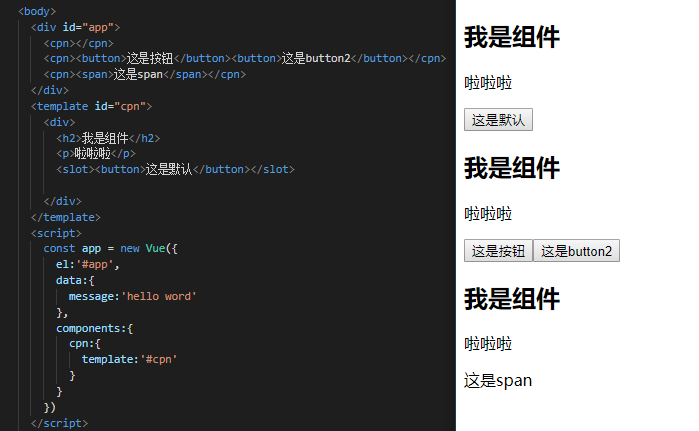 2. `<slot><p>这是默认值</p></slot>`可以设置默认值