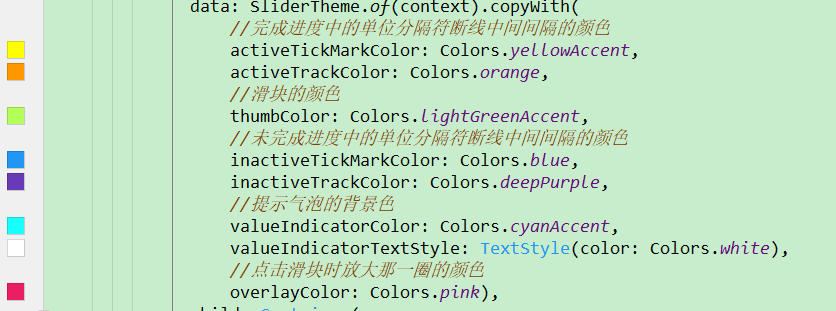 如果要自定义的话是以SliderTheme为parent,并且在这里定义需要修改的内容,它的child中包含slider即可(这里的slider就是自定义的样式)