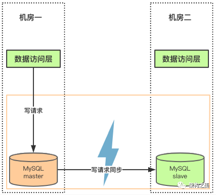 在分布式系统中,CAP定律中的三者只能同时满足二者(如图1所示):CP、AP、AC模型。进一步分析,AC模型并不真正的存在,脱离P(分布式环境)谈AC都是耍流氓。我们以多机房数据库同步更新的场景来分析下为什么CAP定律中三者不能同时满足,如图2所示,用户通过机房一的数据访问层写入数据到MySQL主库,并通过网络把此数据同步到机房二的MySQL从库。在此场景下,CAP对应的含义为:C为机房一的MySQL数据库主节点更新,那么机房二的MySQL数据从节点也要更新;A为必须保证MySQL主从两个数据节点都是可用的;P为当机房一和机房二主从节点出现网络分区,必须保证系统对外可用。对于机房一的写请求,一旦机房一和机房二出现网络分区(即网络断开),此时写请求无法成功写入到机房二的MySQL从库,就会导致写请求无法返回,即A(可用性)无法满足。大家可以思考一个问题,假设机房一和机房二的网络终究会恢复,用户侧也能够容忍机房网络恢复的时间一直等待,那么CAP定律是否同时满足?