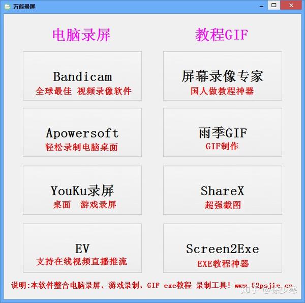 整合 4 个电脑录屏和GIF工具,需用管理员模式运行。