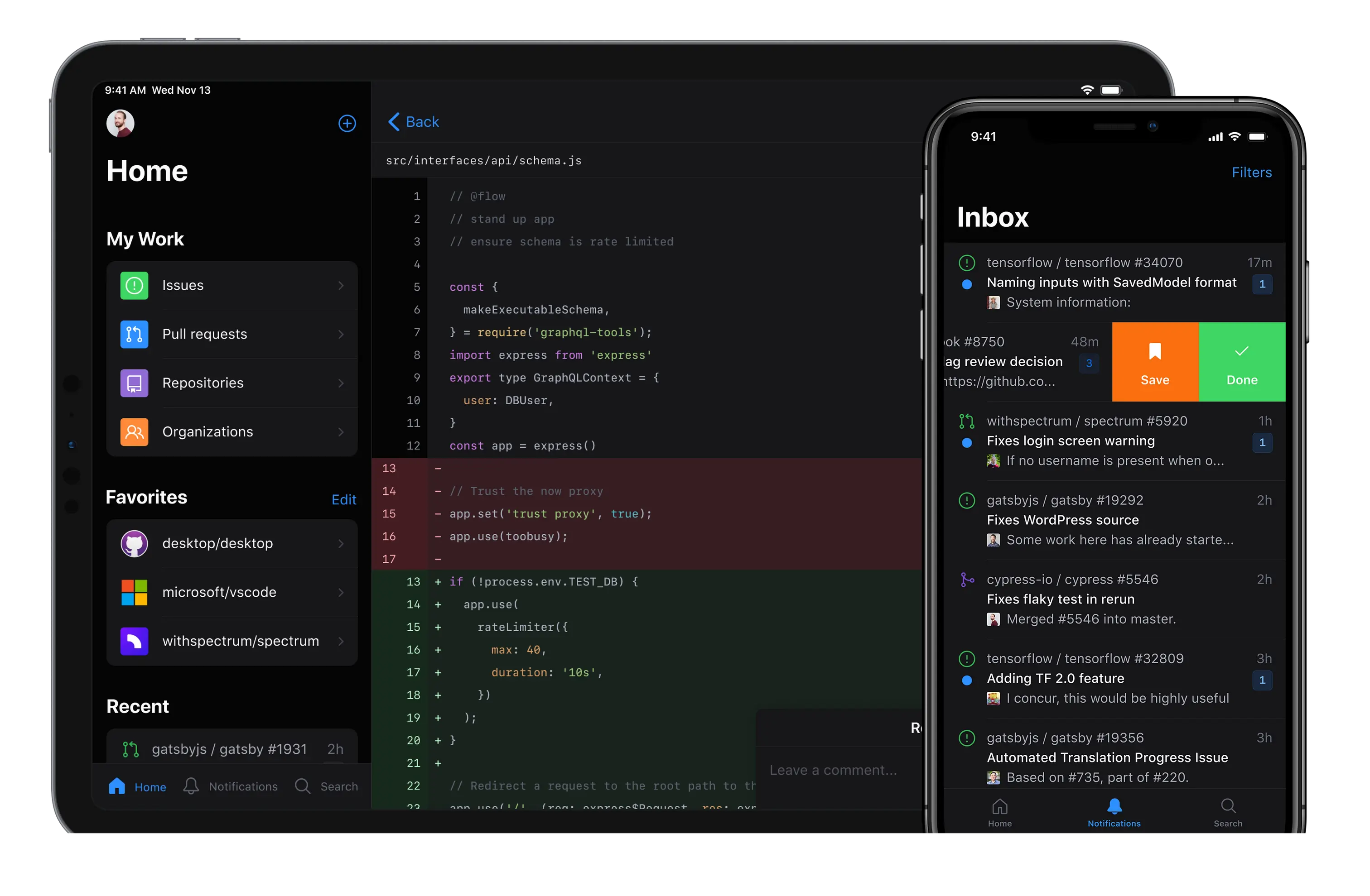 作为本地应用程序,移动版 GitHub 甚至可以根据用户设备偏好在黑暗模式下自适应屏幕大小。