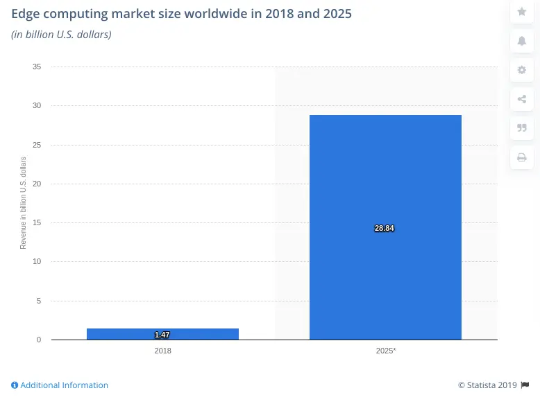 预计边缘计算的市场不会增长三到四倍!实际上,预计从 2018 年至 2025 年,边缘计算的全球市场将增长约 28 倍。