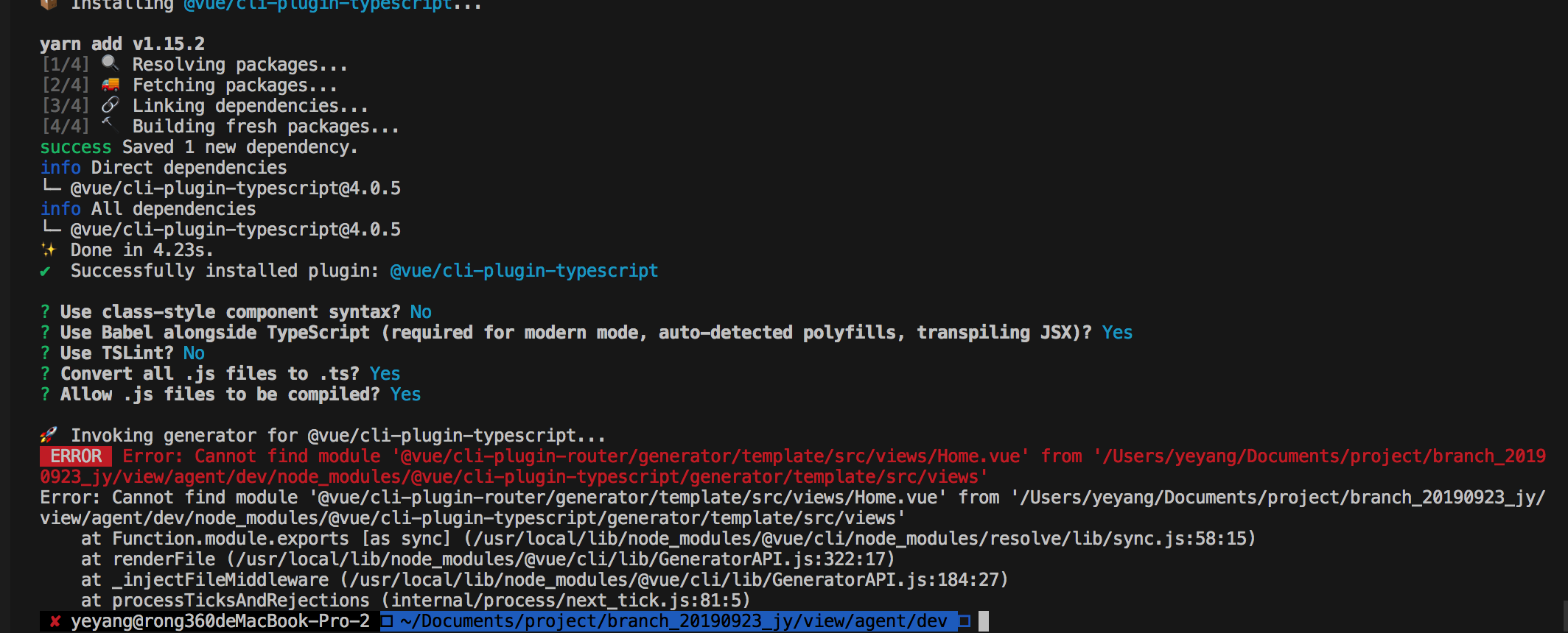 yarn add typescript yarn add @vue/cli-plugin-typescript / vue add @vue/typescript