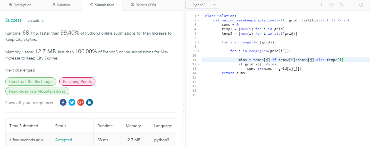 temp2 = max([grid[m][j] for m in range(len(grid[i]))]) # up\down