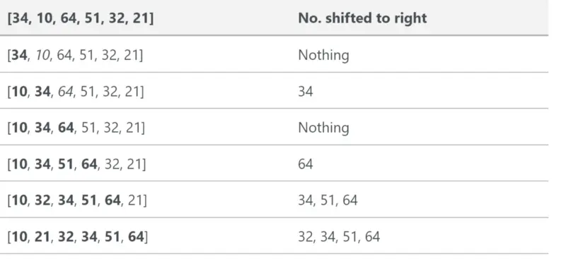 In this instance we are inserting the newly sorted elements into a new sub-array, which starts at the start of the array.