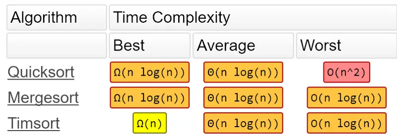 Timsort’s sorting time is the same as Mergesort, which is faster than most of the other sorts you might know. Timsort actually makes use of Insertion sort and Mergesort, as you’ll see soon.