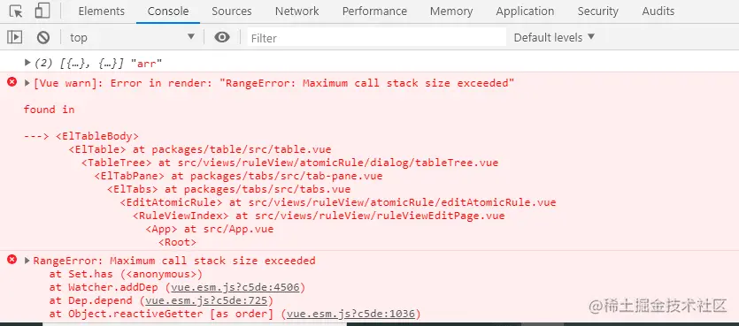上网查了下,意思是堆栈溢出,这个提示让我十分头疼,网上关于出现这个问题的原因有很多种,但是我没有找到和我这个一样的。到了最后,才找出来原因出在table列表绑定的row-key上,因为row-key绑定的参数必须是唯一的,我绑定的是id。但是后台返回的列表中一级列表中的id和二级列表中的第二条数据的id是一样的,所以才报出了这样的错误。关于堆栈溢出的问题说完了,下面要写一下table懒加载这个功能:
