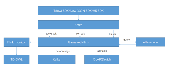 图1. Game Analytics-etl-adaptor 迁移至 Flink 后的数据流图
