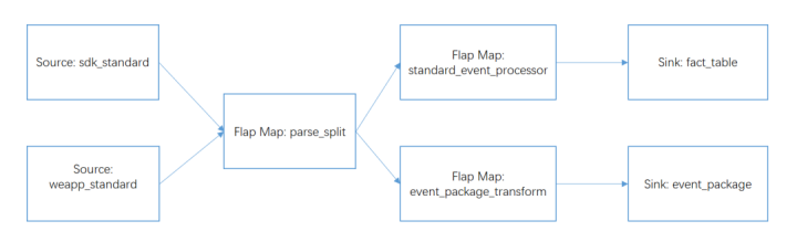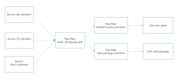 图3. App Analytics-etl-adaptor 的标准 SDK 处理工作迁移到 Flink 后的数据流图