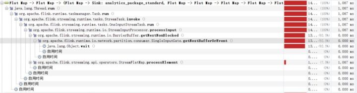 我们的工作线程(RecordWriter 和 RecordReader 所在的线程)的大部分时间都花在了向 BufferPool 申请 Buffer 上,这时候 CPU 的使用率会剧烈的抖动,使得 Job 的消费速度下降,在 1.1.x 版本中甚至会阻塞很长的一段时间,触发整个 job 的背压,从而造成较严重的业务延迟。