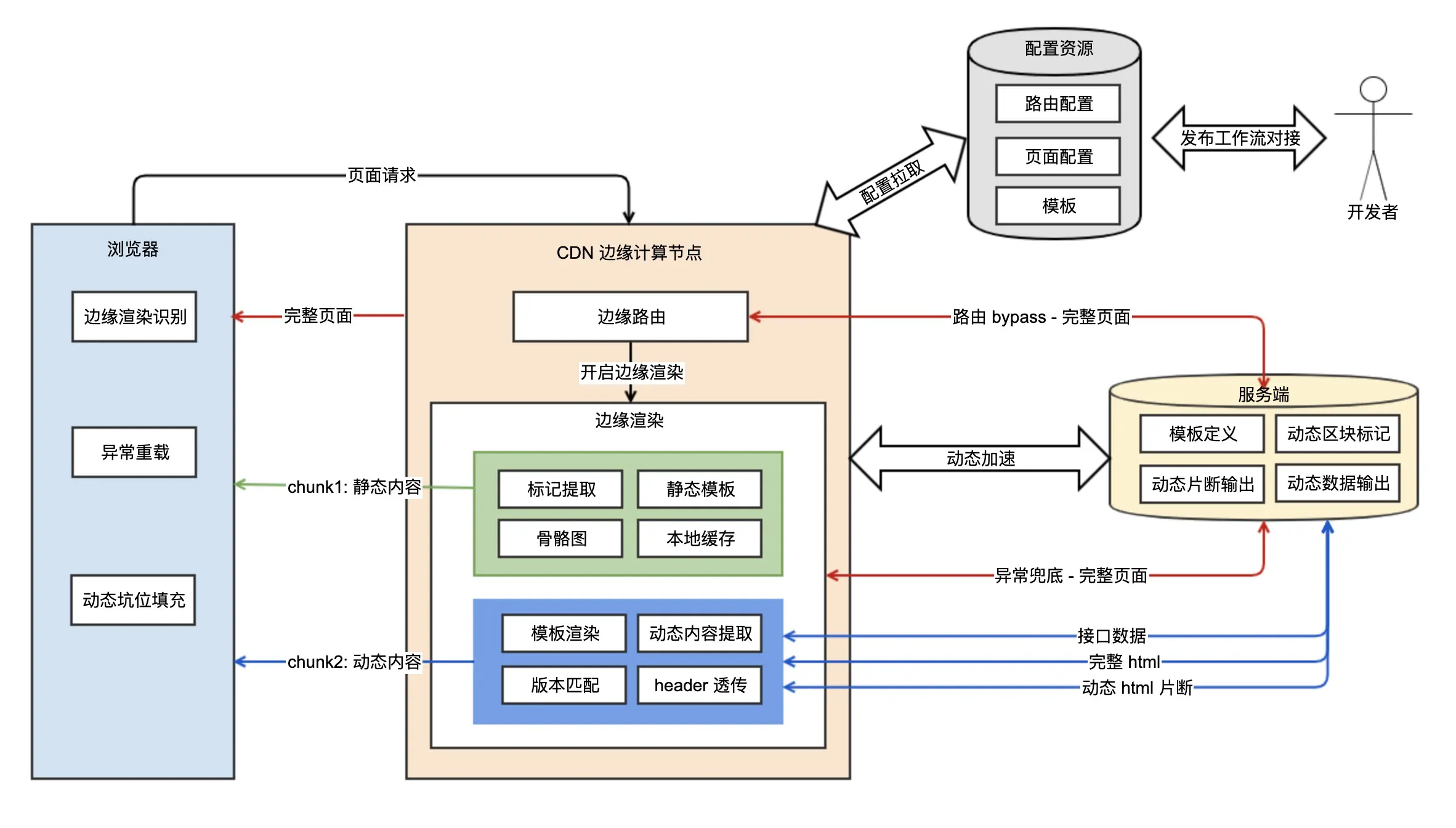 - 如果进了边缘渲染,已经返回了静态部分的响应给客户端,然后在边缘节点了加载动态内容出了问题(超时、http 错误码、与静态内容版本号不匹配),返回一个