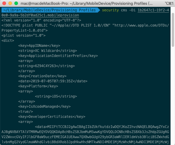 $ security cms -Di embedded.mobileprovision