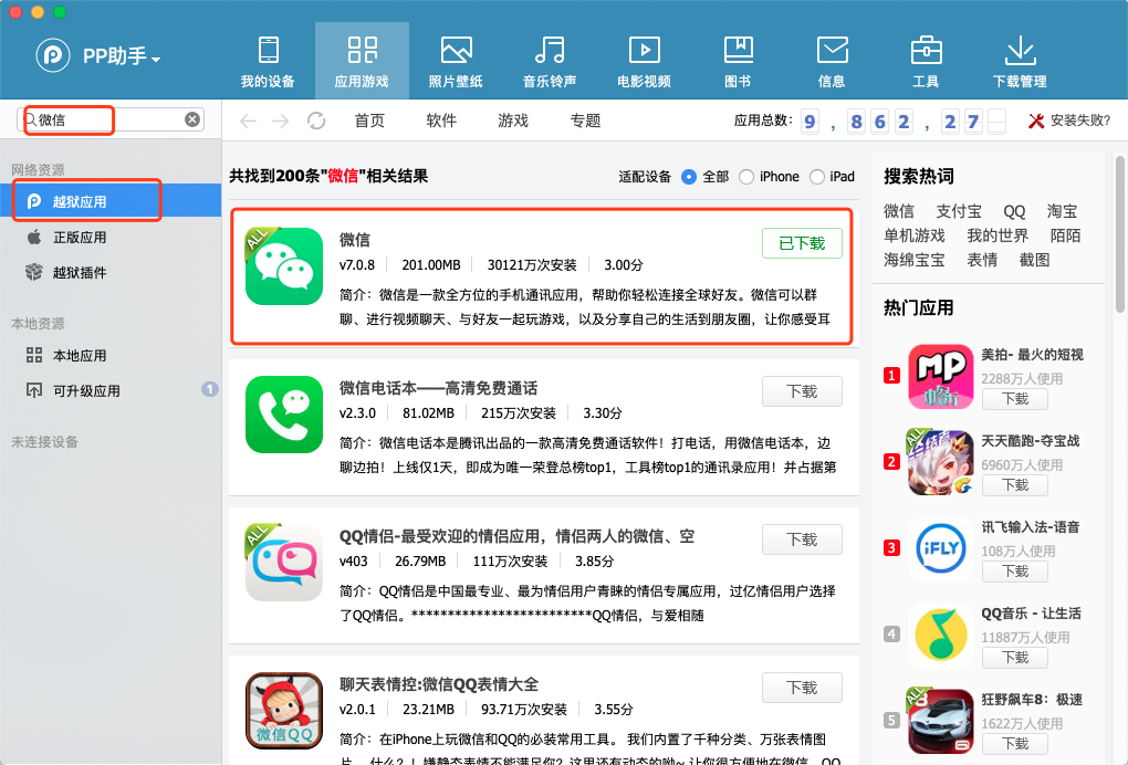 PP助手下载微信(越狱版本)