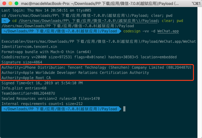 $ codesign -vv -d WeChat.app
