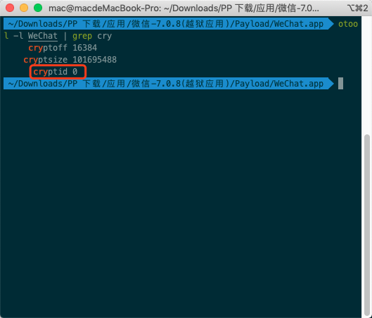 $ otool -l WeChat | grep cry