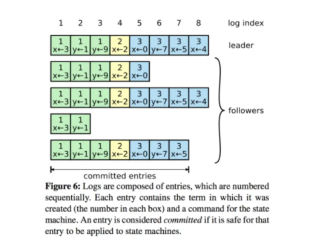 每条日志保存了对于的数据变更,以及日志编号和term号码。leader在发生log给follower的时候还会发送上一条日志的信息(序号和任期),如果follower发现接收到的log中记录的上一条log的信息和自己当前的不一致,说明中间存在数据差异,这个时候follower就会要求leader发生缺失的log。