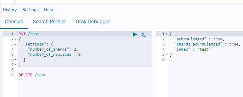 然后再在Kibana上新建一个索引:设置两个主分片,两个从分片: