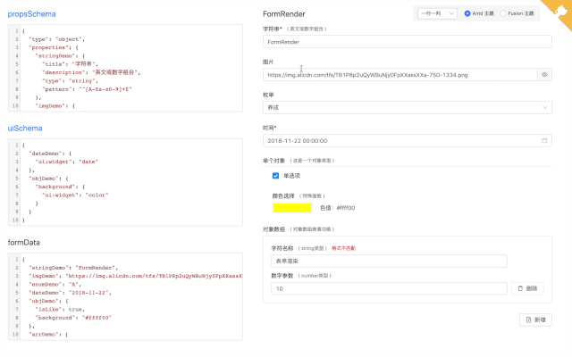 调研过集团内外相关方案,可支持 Antd 或者 Fusion 体系、满足 JSON Schema 协议、配置简单即可使用的方案暂无找到