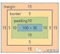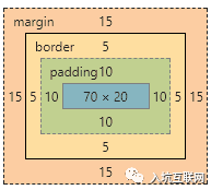 IE模型元素宽度width=content + 2 x padding + 2 x border = 70px + 2 x 10px + 2 x 5px = 100px。