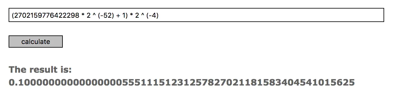 // 0.09999999999999999 instead of 0.1. The shorter representation will even be