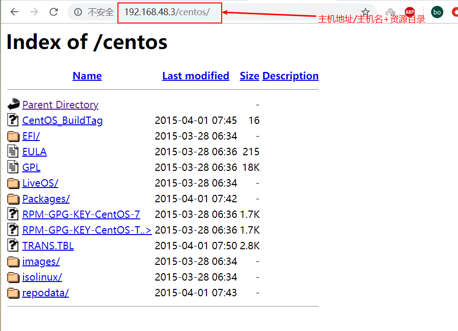 [root@practice html]# ln -s /mnt/cdrom ./centos #创建对RPM包的软链接,也可以直接将软件包复制到这个目录下