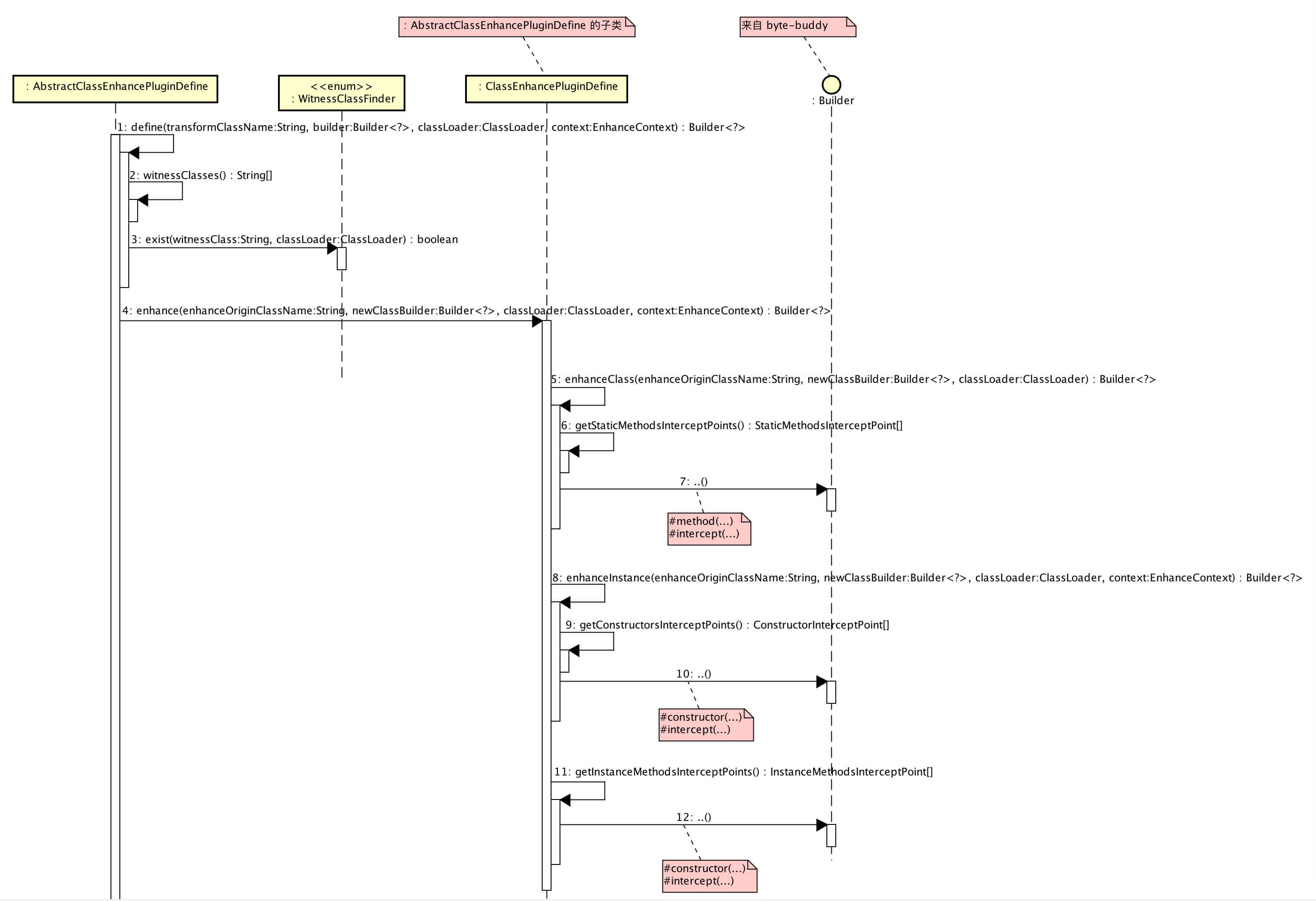 #getConstructorsInterceptPoints()/#getInstanceMethodsInterceptPoints()方法,获得 ConstructorInterceptPoint / InstanceMethodsInterceptPoint 数组。若都为空,不进行增强。 - 第 112 至 128 行 :使用