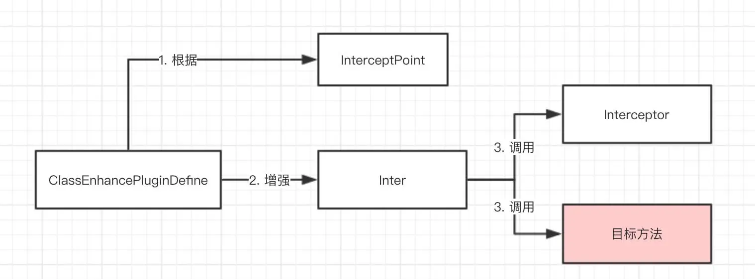 XXXInterceptPoint 接口,对应一个 net.bytebuddy.matcher.ElementMatcher 和一个拦截器。