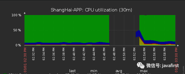 第二天同样时间,ECS果然暴涨了CPU。这是时候zabbix的工作如希望进行保留了一台故障的ECS1给我。