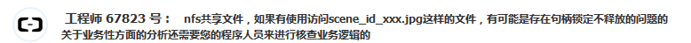 8)阿里云工程师用的排查手段和我差不多,最终也是没能看到什么。也只是给了我一些治标不治本的建议。后来上升到专家排查,专家直接在阿里云后端抓取了coredump文件分析打开的文件是图片,程序是nfsd。