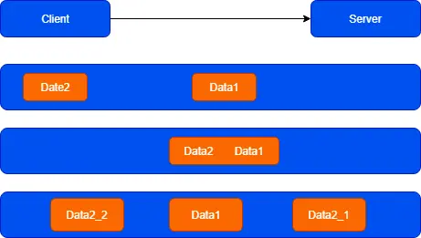 - 第三种情况,Data2被分离成Data2_1和Data2_2,并且Data2_1在Data1之前到达了服务端,这种情况就产生了拆包。
