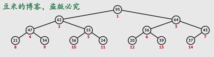 正因为完全二叉树的独特性质,因此其数据可以使用数组来存储,而不需要使用特有的对象去链接左节点和右节点。因为其左右节点的位置和其父节点位置有这样的一个计算关系: