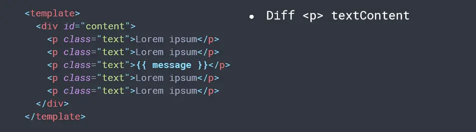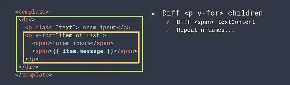 - 每个v-for循环内部:只有 {{ item.message }} 是动态节点
