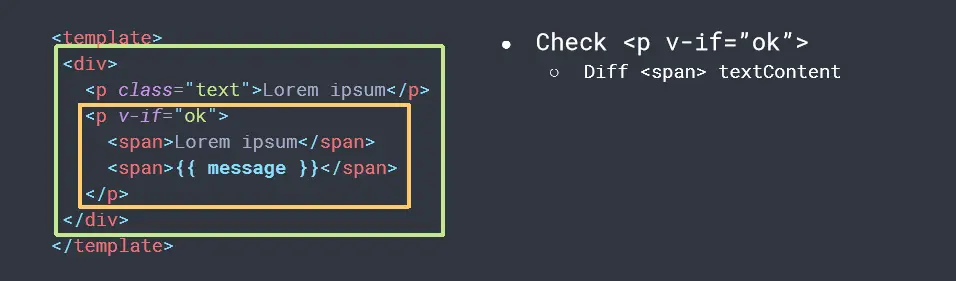 - v-if 内部:只有 {{ message }} 是动态节点