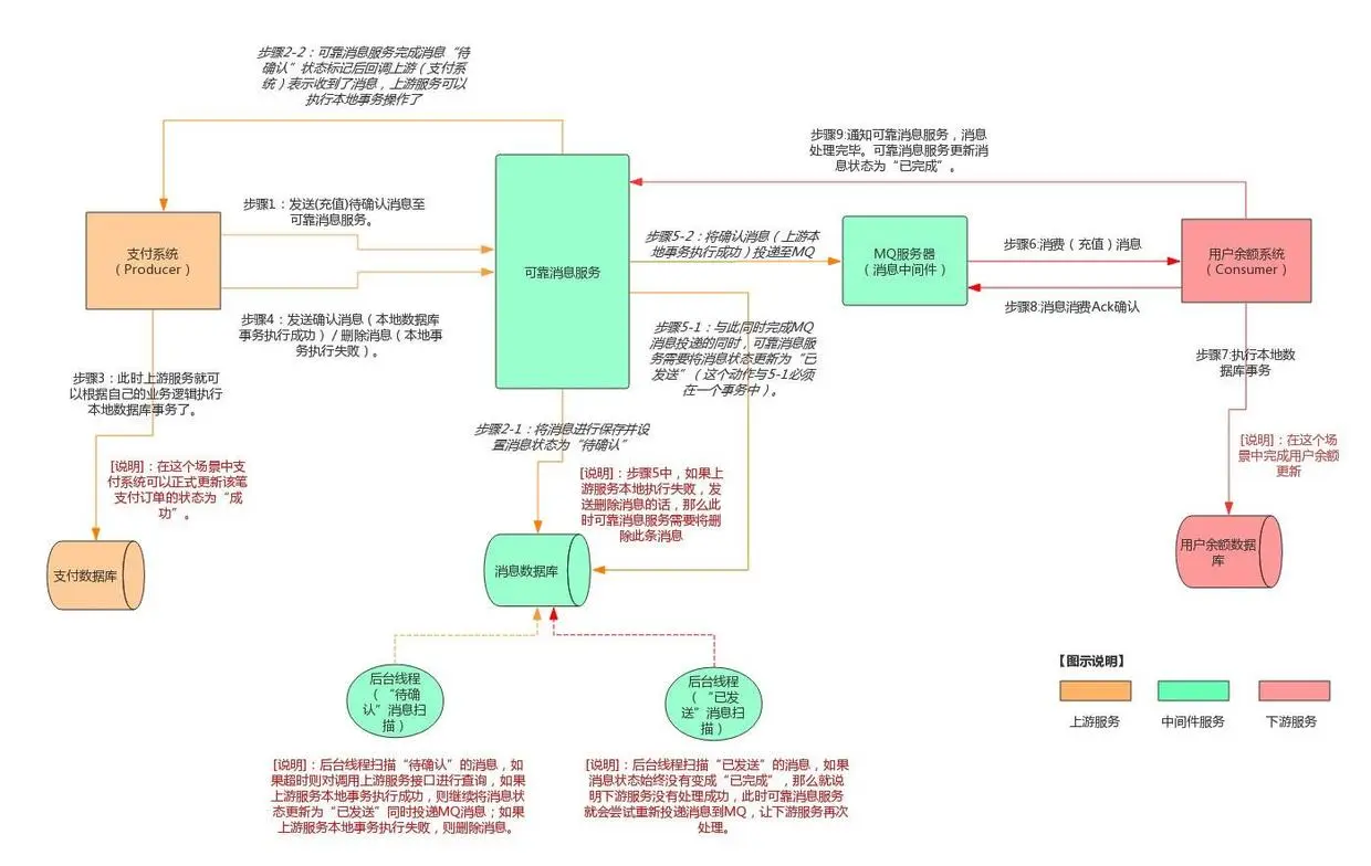 说到这里,大家可能会有疑问了!因为在上述描述中,即使上游服务本地数据库事务执行成功了,但是在发送确认消息至可靠消息服务的过程中,以及可靠消息服务在投递消息至MQ服务的过程中,还是会存在失败的风险,这样的话还是会导致支付服务更新了状态,但是用户余额系统连消息都没有收到的情况发生?