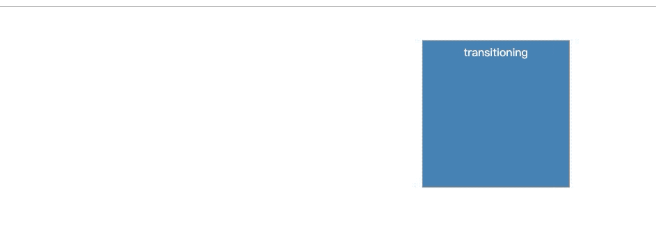 selection.transition() 定义了一个过渡,然后用 duration() 设置过渡的时长为 5000ms, 然后我们设置了过渡结束后的属性值,d3 会帮我们计算出对应的开始时的属性值,并在过渡期间通过插值器和算法自动填充对应的属性。另外 transition() 是可以多次指定的,下一个 transition 会在上一个结束后开始。