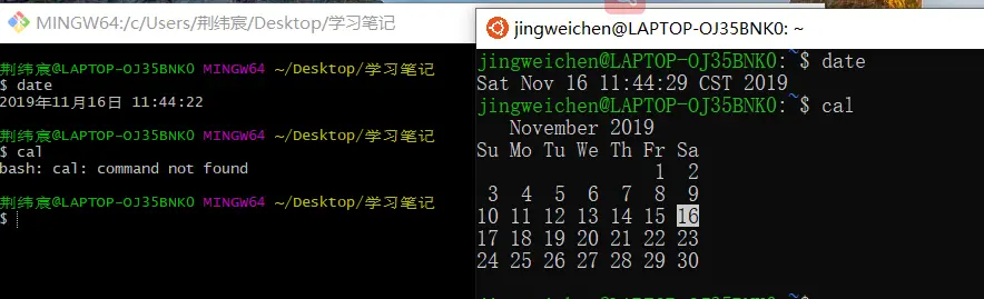 cal 显示日历 只有linux可以